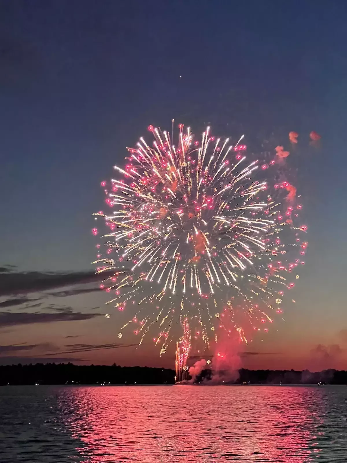 Holiday House gives you everything people love about “up north” without the hassle—steps to the water, your own dock and beach area, cozy interior, and quiet evenings by the fire as the sun sets over East Twin Lake. It’s simple, comfortable lake life that feels like a real break.